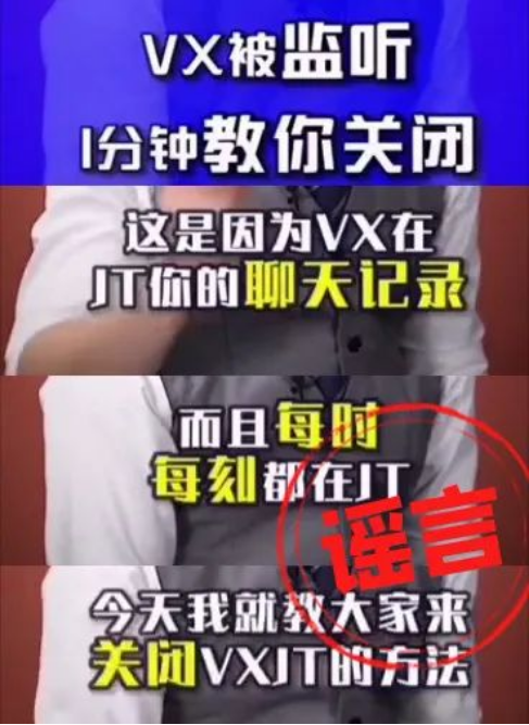 腾讯微信团队提到,有短视频声称“微信正在监听你的聊天记录”,并在视频中传授所谓“1分钟关闭”诀窍。