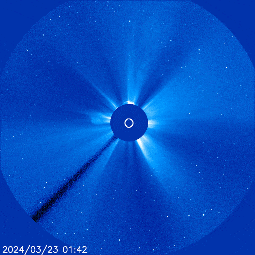 此次日冕物质抛射(CME)过程发生的位置几乎正对地球,因此从地球看去,喷发物形成一个圆面,也就是以往我们提到的“全晕”。此类爆发活动喷出的太阳物质相对地球速度快、覆盖度高,可能引起比较强的地磁活动。