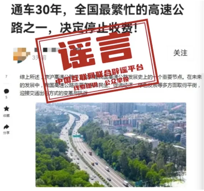谣 言 京沪高速公路停止收费?